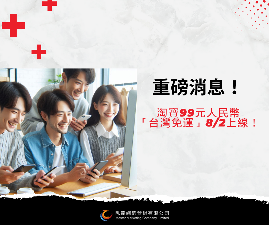 重磅消息淘寶99元人民幣台灣免運82上線...